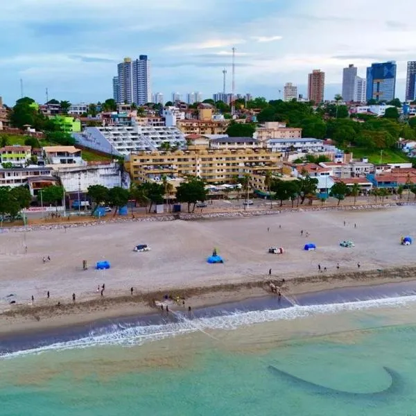 Melhor apto 3 suítes vista praia à beira mar, piscinas e estruturas heeft een buitenzwembad, een tuin, een terras, en biedt accommodatie in Parnamirim met gratis WiFi en uitzicht op de zee.