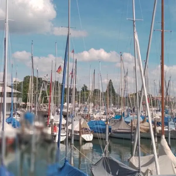 Top 2 Zi-Wohnung, 350 m zum See ligger i Friedrichshafen, Baden-Württemberg og har en balkon. Der er en restaurant på stedet samt gratis privat parkering og gratis wi-fi.