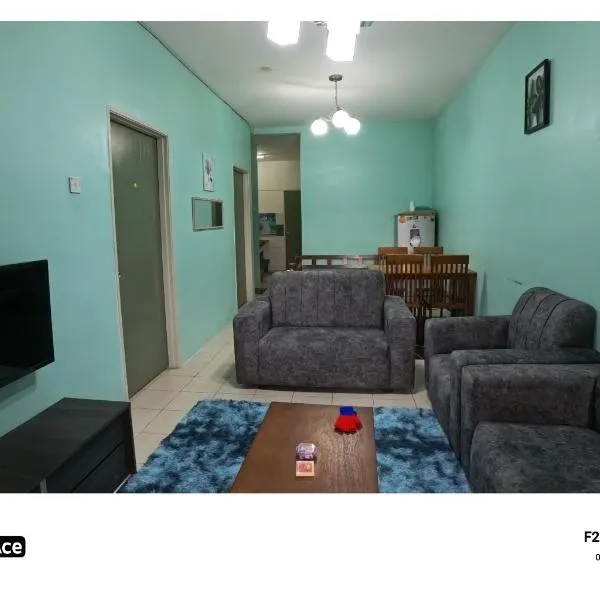 MUSLIM 2 BED ROOM APARTMENT GOLDEN HILL ligger i Brinchang, Pahang og har en balkon samt udsigt til byen. Denne lejlighed har satellit-fladskærms-tv, 2soveværelser og stue.