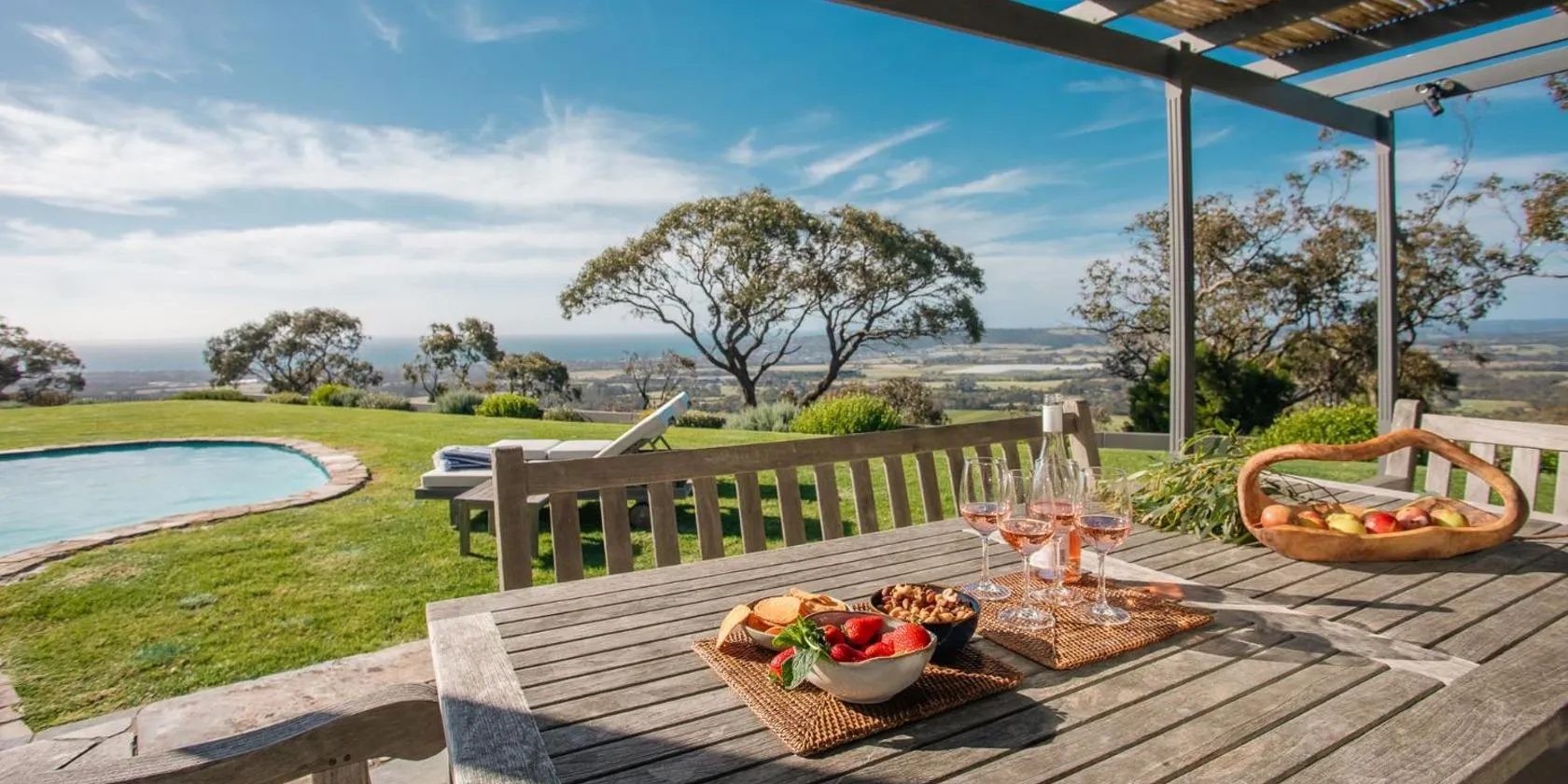 Ecco Red Hill Retreat - Luxe Rural Escape with Tennis Court ligger i Red Hill South, kun 17 km fra Martha Cove Harbour. Her er en have, en tennisbane og børnepasning.