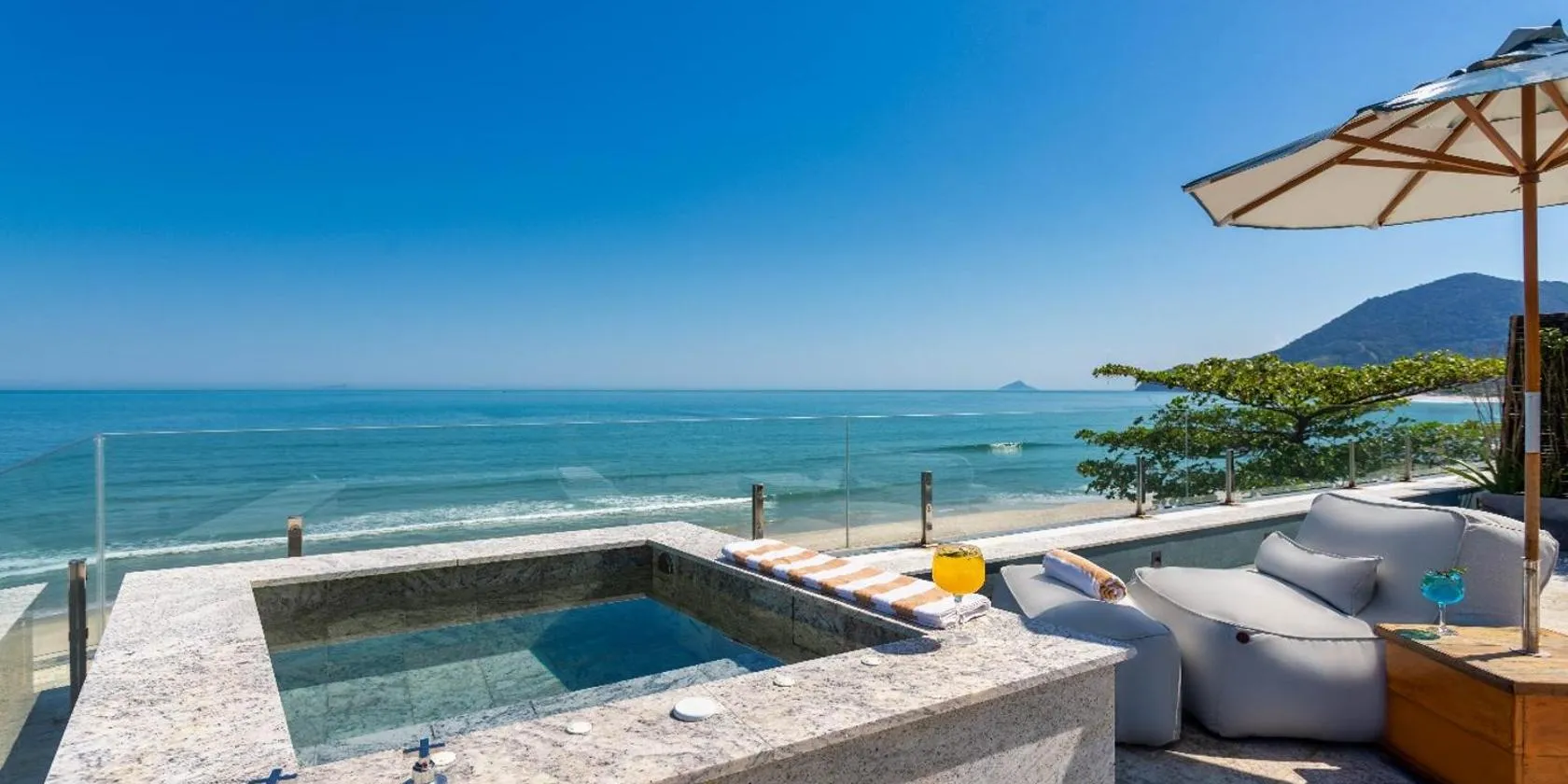 The beautiful Amora Hotel Maresias is located beachfront to the popular Maresias Beach and features a heated outdoor pool, a hot tub and a sauna.