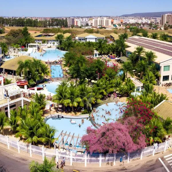 Diroma Piazza Acesso Diroma Acqua Park ligger i Caldas Novas og tilbyder indkvartering med gratis wi-fi, swimmingpool, en restaurant, en bar og udsigt til byen.