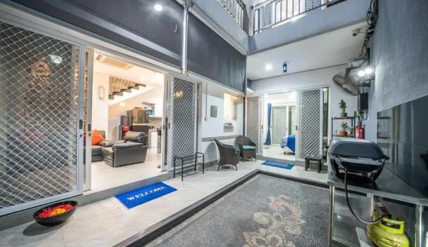 Leafy Home Canggu ligger i Canggu og tilbyder indkvartering med terrasse eller balkon, gratis wi-fi, fladskærms-tv samt en udendørs swimmingpool og en have.