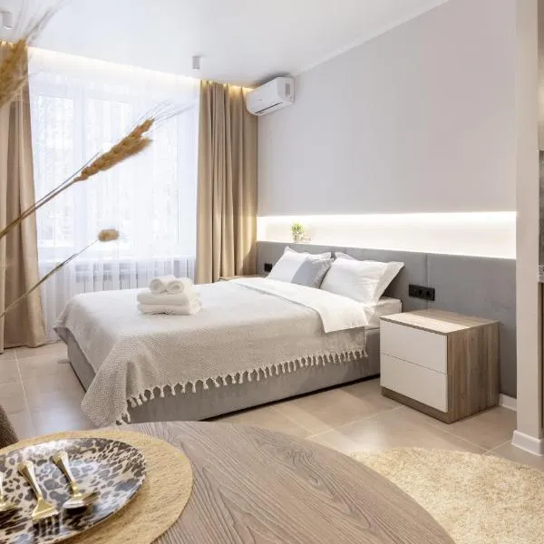 Уютная студия в центре ligt op 6 minuten lopen van Gvardeytsev-Panfilovtsev Park in Alma-Ata, en biedt accommodatie met airconditioning en gratis WiFi.