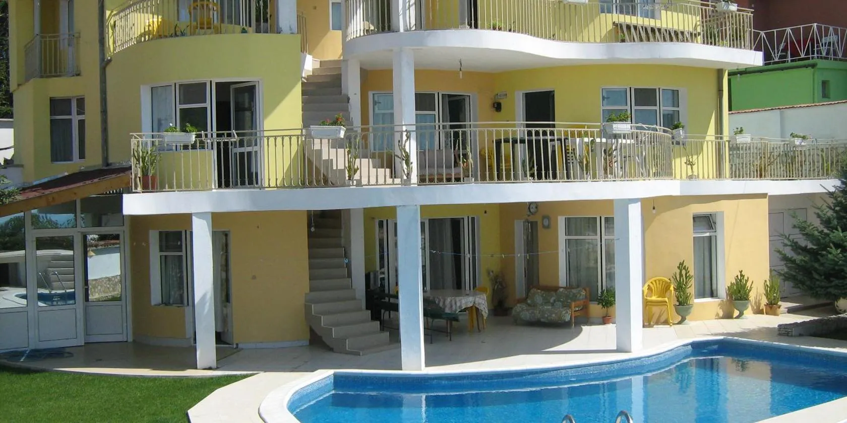 Villa Black Sea beschikt over een zwembad, een tuin, een terras en uitzicht op de bergen, en biedt accommodatie met gratis WiFi in Baltsjik.