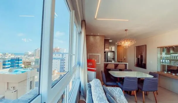 Apê elegante, terraço Lindo e ótima localização ligger i Capão da Canoa med udsigt til byen. Her er en udendørs swimmingpool, et fitnesscenter og en have. Der er også gratis wi-fi.