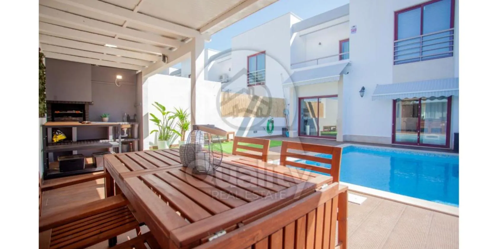 MoradiaT4 com piscina aquecida ligger i Arrentela med udsigt til en have. Her er en udendørs swimmingpool, et privat strandområde og en terrasse. Der er også gratis wi-fi.