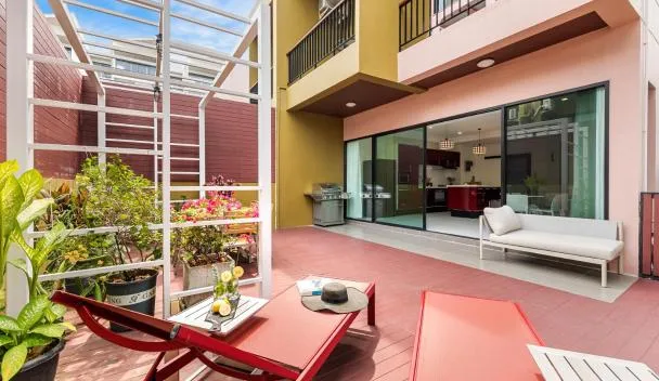 Bangrak Cozy Stay in Koh Samui biedt accommodatie met uitzicht op de tuin, een buitenzwembad, een fitnesscentrum, een tuin, een gedeelde lounge en een terras.