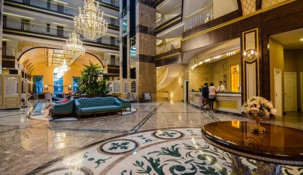 Hos Alanya gold city hotel main building 3 bedroom apartment i Alanya er der udsigt til byen, gratis cykler, en have, et privat strandområde, en terrasse og en restaurant.