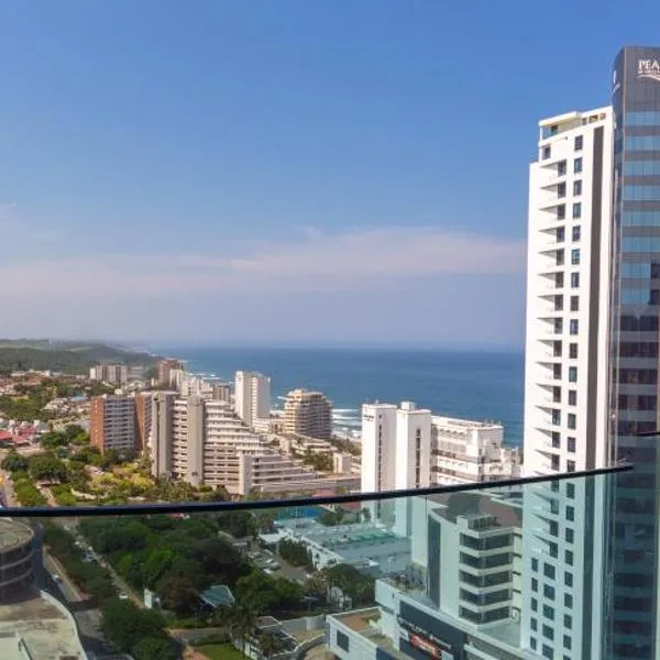 Modern Ocean-View Apartment ligger i Durban og har en udendørs pool og havudsigt. Dette overnatningssted med aircondition ligger 3 minutters gang fra Snake Park Beach.