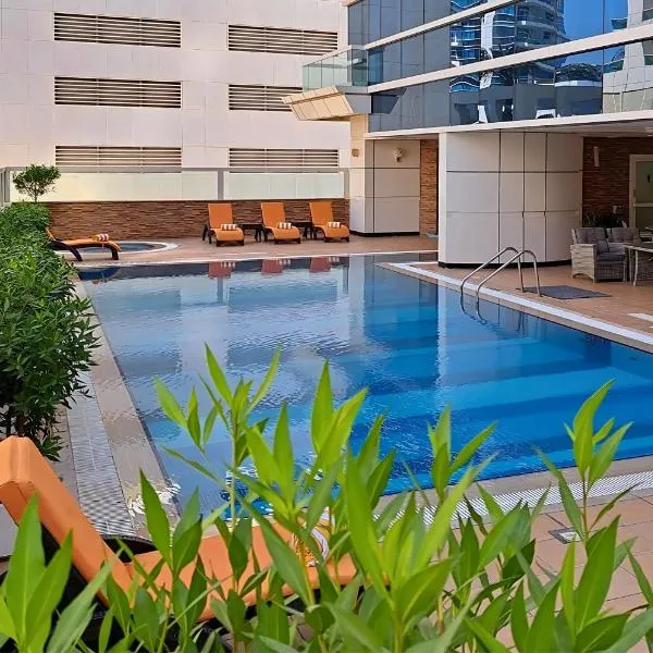 Avani Plus Palm View Dubai Hotel & Suites ligger indenfor 1,7 km fra Mina Seyahi Beach og har restaurant, gratis cykler, en udendørs swimmingpool og et fitnesscenter.