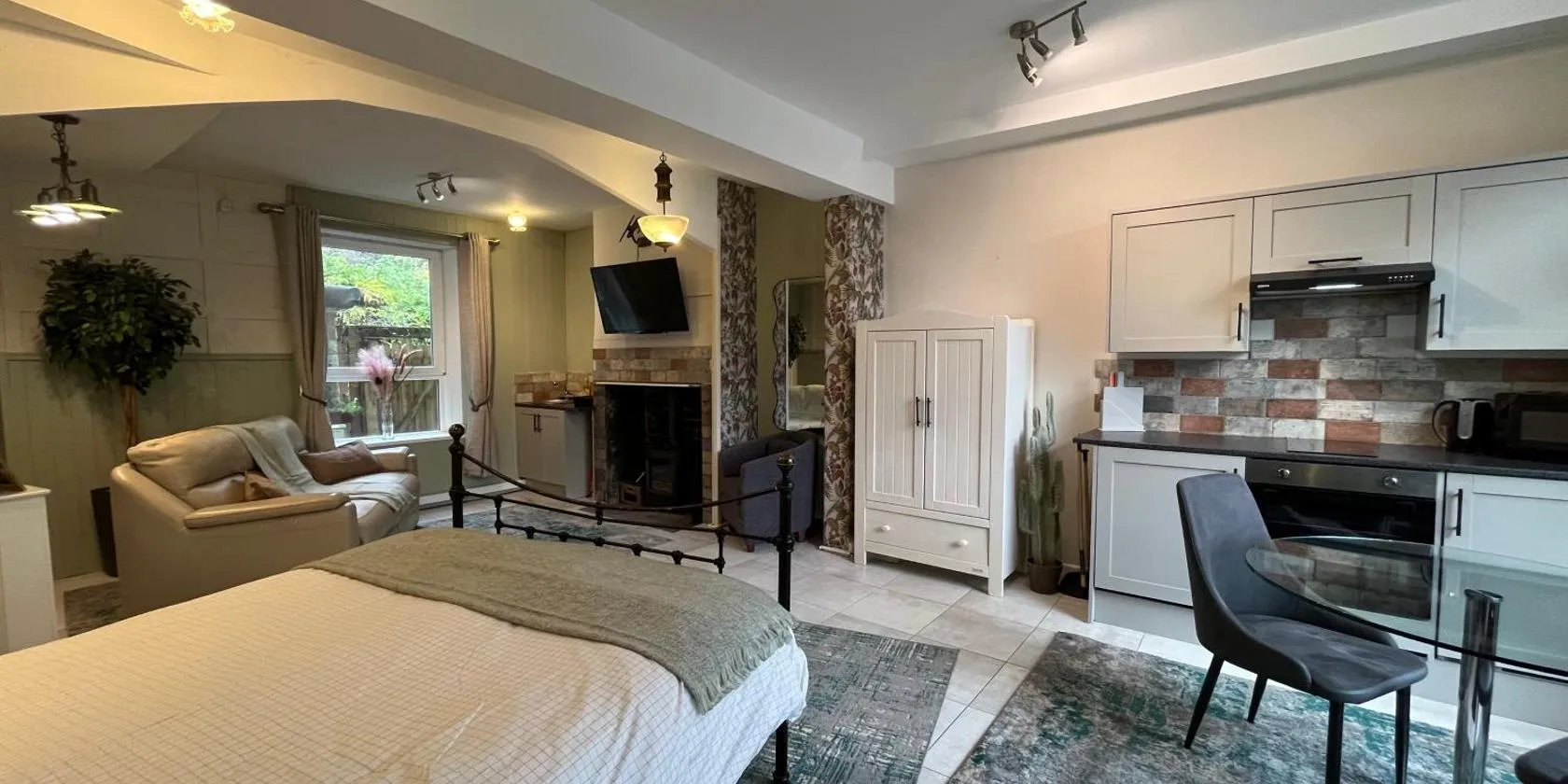 Bowie's Abode ligger ca. 28 km fra White Rose Shopping Centre. Her er gårdhave, kedel og udsigt til en have.