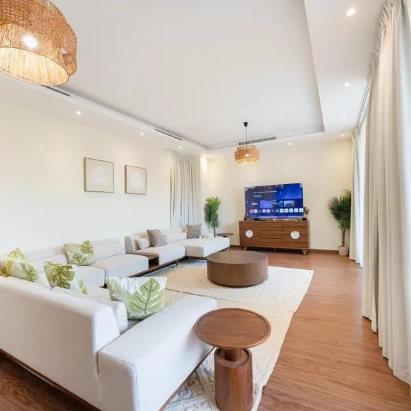 Bloomfields al-Fujairah 4BR Villa, Beach Access ligger ved stranden i Rūl Ḑadnā, kun 5 minutters gang fra Dibba Strand. Her er en have, et privat strandområde, en terrasse og gratis wi-fi.