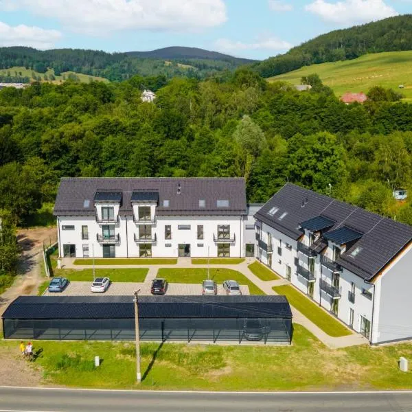Located just 34 km from Museum of Paper Velké Losiny, Apartmány Pod Sjezdovkou offers accommodation in Červená Voda with access to a garden, a terrace, as well as bicycle parking.