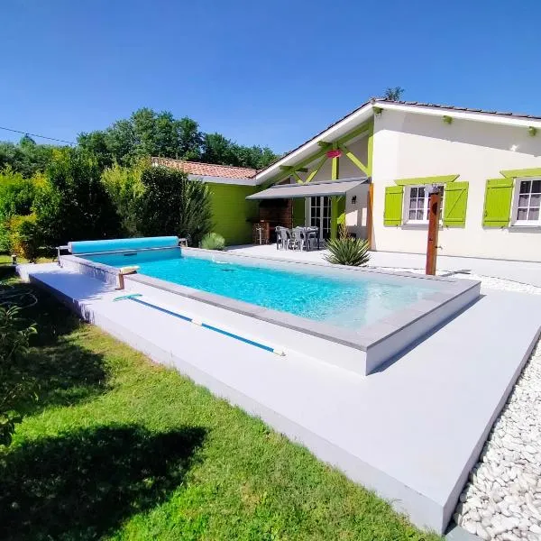 Featuring a hot tub, Gîte avec piscine et espace bien-être partagés entre Bordeaux et Lacanau océan is located in Brach.