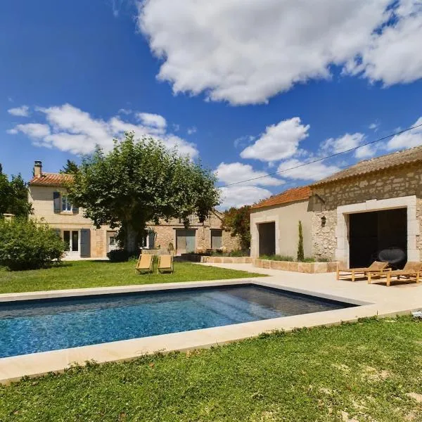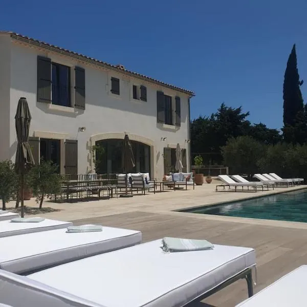 Mas Leblanc des Alpilles ligger i Saint-Étienne-du-Grès og tilbyder indkvartering med gratis wi-fi, swimmingpool, en have, en terrasse og bjergudsigt.