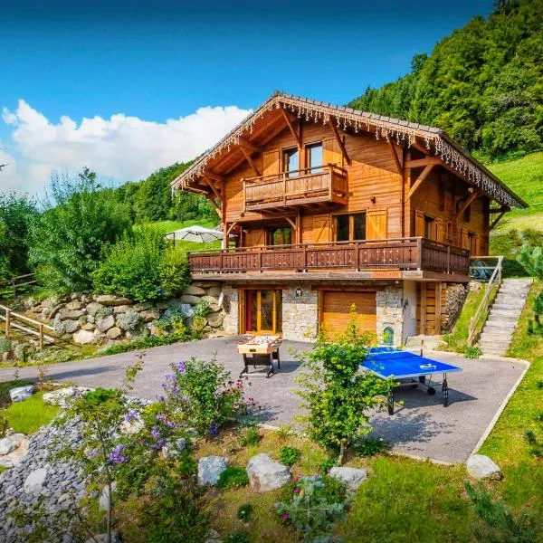 Chalet ARAVIS COSY - Spa & piscine tilbyder indkvartering i Saint-Jean-de-Sixt med har, gratis privat parkering samt sæsonåben udendørs pool.