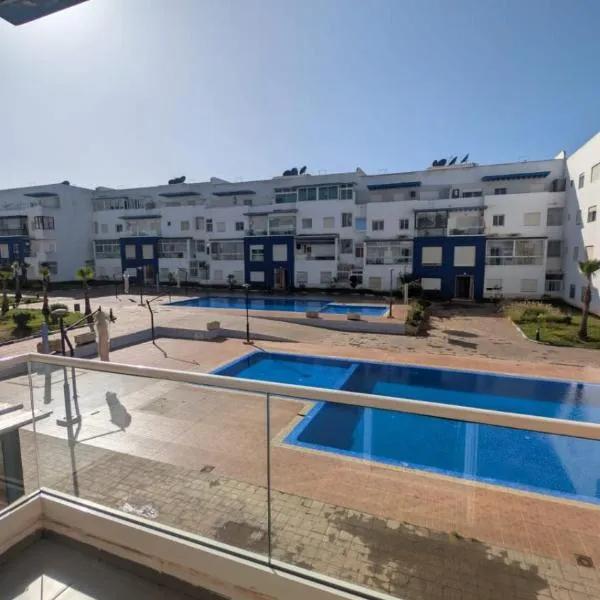 Appartement à al tilal bevindt zich in Mohammedia en heeft accommodatie en een privézwembad, uitzicht op de tuin en een balkon.