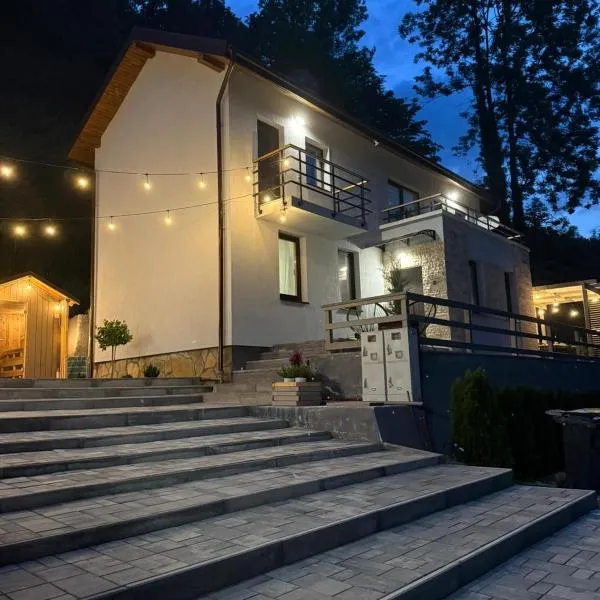 Located in Semenic, La Popasul Cerbului features a garden, barbecue facilities and shared lounge. Featuring a shared kitchen, this property also provides guests with an outdoor fireplace.