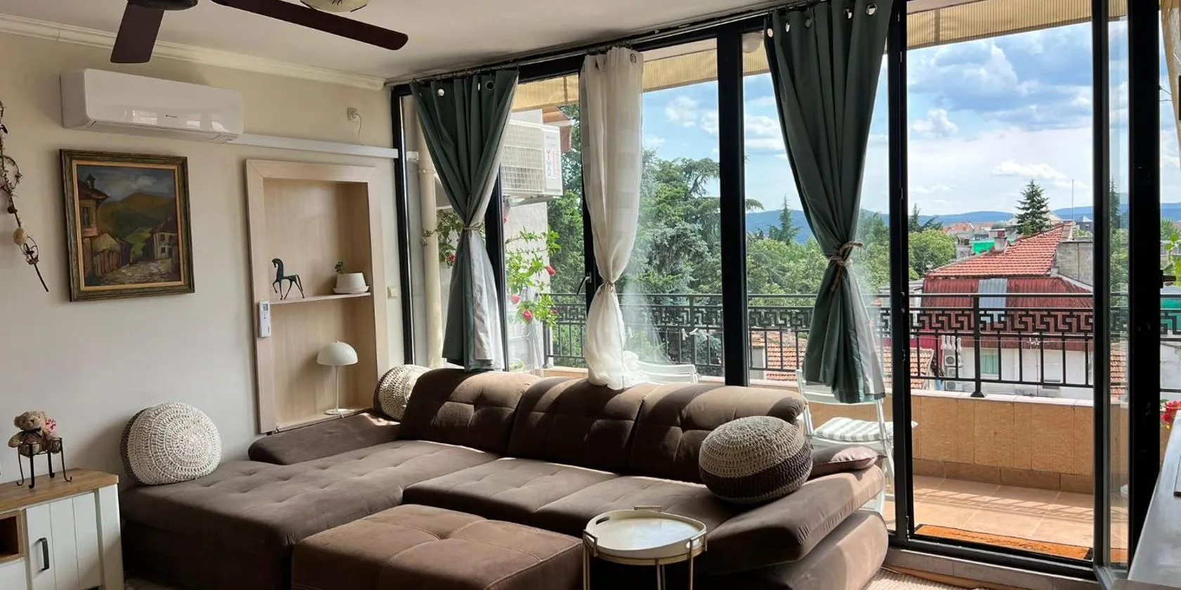 Kazanlak CENTRAL Studio Apartment Guesthouse Flat, Glorious Views & Free Parking! Self Check-in, Super place! ligger ca. 32 km fra Mall Galleria og har en terrasse, balkon og udsigt til byen.