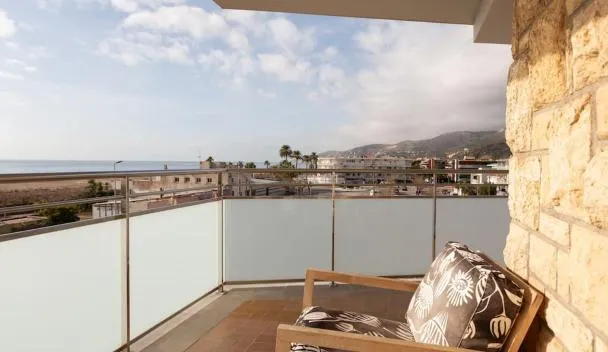 Beach Villa Cristina by HHBCN ligger ca. 1 minutters gang fra Platja Castelldefels Strand. Her er balkon, kaffemaskine og pooludsigt.