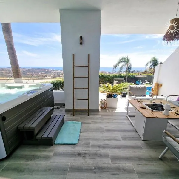 Sea views and hot tub close to beach heeft een seizoensgebonden buitenzwembad, een terras, een tennisbaan, en biedt accommodatie in La Cala de Mijas met gratis WiFi en uitzicht op de zee.