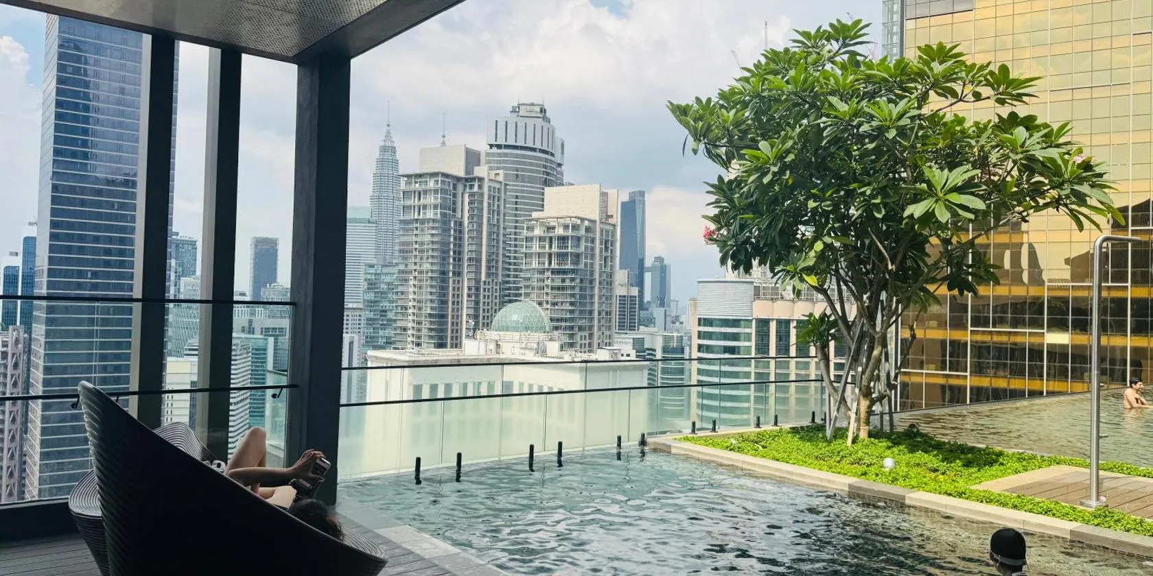 Hos TM Aspanez Kuala Lumpur With Twin Tower View i Kuala Lumpur er der udsigt til byen, en udendørs swimmingpool, en have, et fælles opholdsområde, en terrasse og en bar.