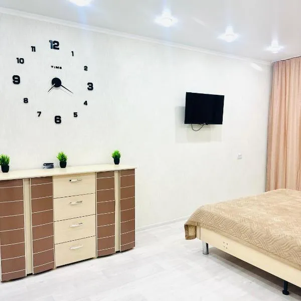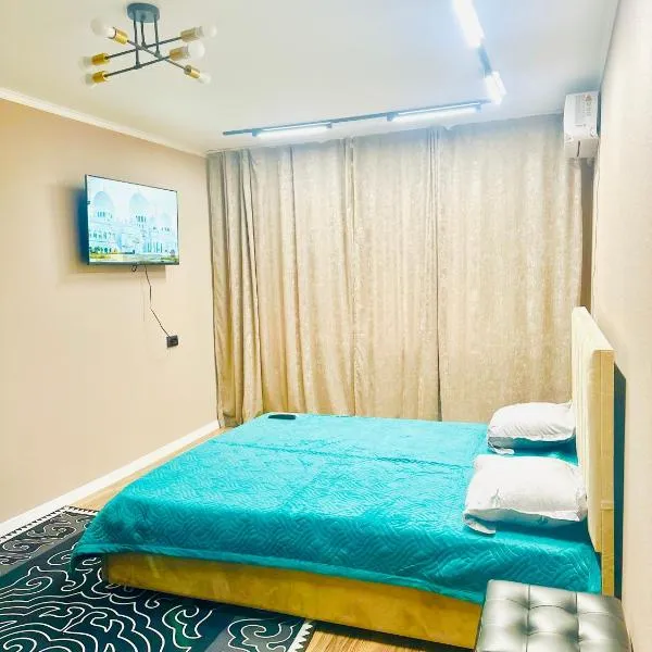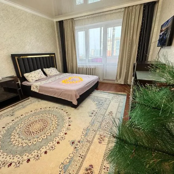 Квартира по суточно is gelegen in Oral en heeft een hot tub. Het appartement met airconditioning beschikt over een balkon, 1 aparte slaapkamer en een volledig uitgeruste keuken.