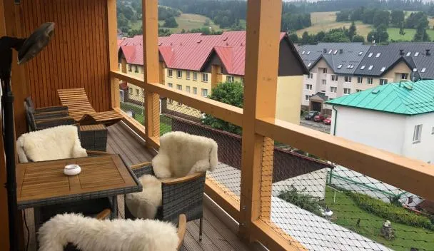 Terasy Apartmán se saunou bevindt zich in Železná Ruda in de regio Pilsen (regio), en heeft een balkon en uitzicht op de stad. Deze accommodatie heeft een terras, gratis privéparkeren en gratis WiFi.