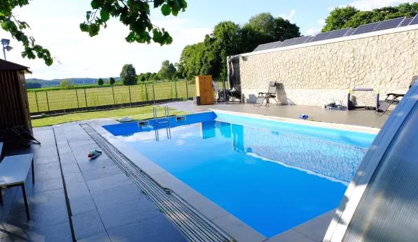 Villa Casa Blanca mit Privatem Schwimmbad 26 grad und Sauna heeft uitzicht op de tuin, en biedt accommodatie met een terras en een patio, op 7,8 km van Einschornsteinsiedlung.