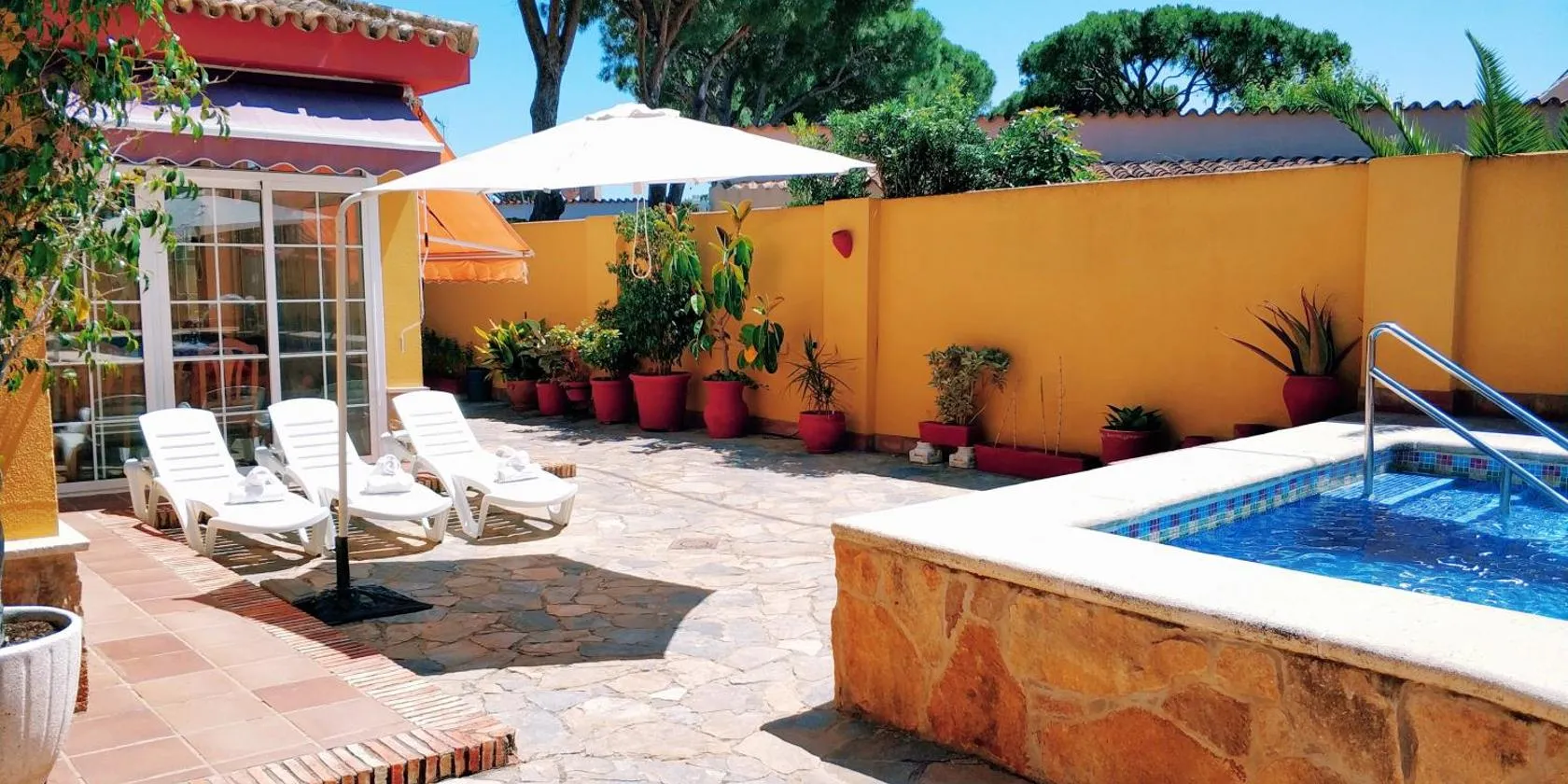 Jacuzzi & Pool House w Rooftop Terrace, Garden BBQ ligger i El Puerto de Santa María med pooludsigt. Her er en sæsonåben udendørs swimmingpool, en have og en terrasse. Der er også gratis wi-fi.