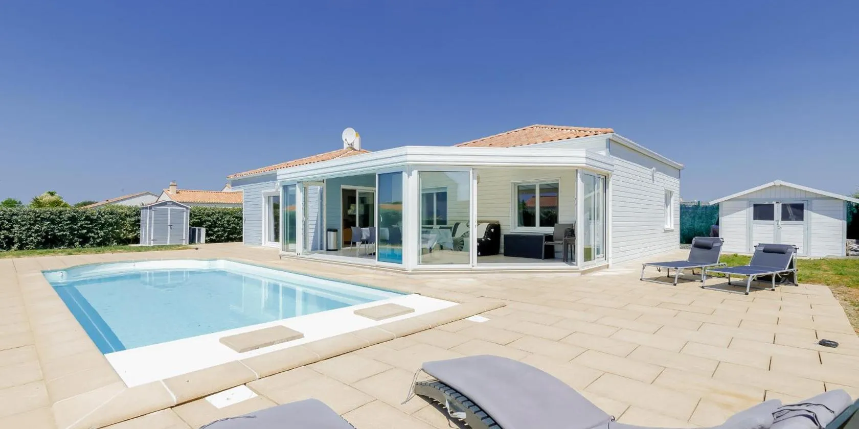 Villa ensoleillée à Saint Hilaire de Riez avec piscine privée heeft uitzicht op het zwembad, en biedt accommodatie met een seizoensgebonden buitenzwembad, een tuin en een terras, op 1,8 km van Plage...