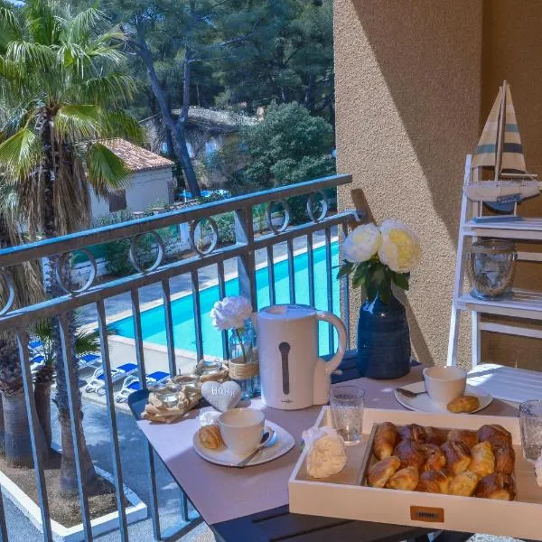Charmand studio en résidence avec piscine ligger i Bandol og har en privat pool.