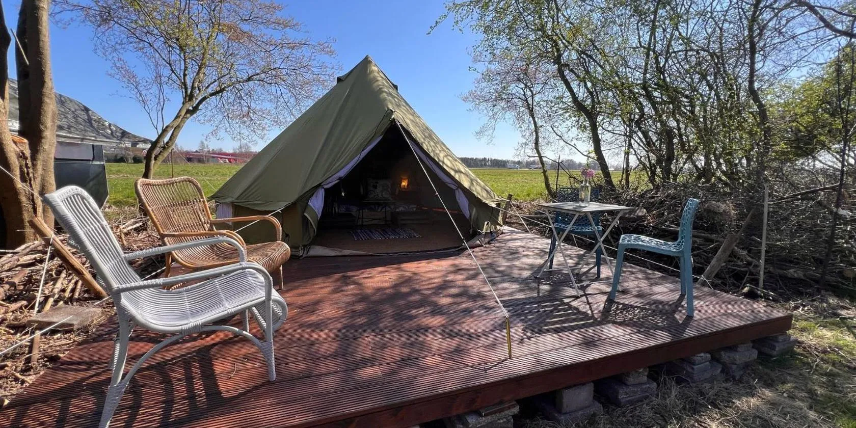 Camping Meerwijck - Fluitekruid 4 ligt in Kropswolde in de regio provincie Groningen en biedt accommodatie met gratis privéparkeren. Er is ook een koelkast en een waterkoker aanwezig.