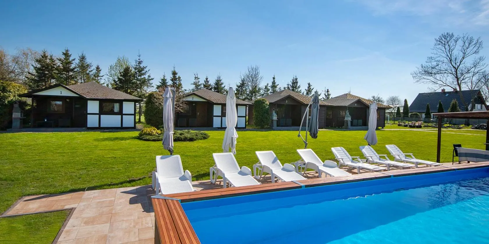 Holiday cottages, pool, air conditioning ligger i Jarosławiec, mindre end 1 km fra Sztuczna Plaża Jarosławiec Strand og 11 minutters gang fra Vandlandet Jaroslawiec, og tilbyder indkvartering med...