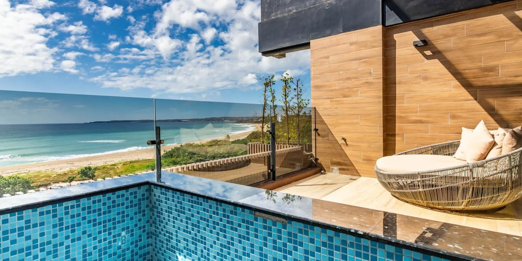 M42 RESORT KENTING in Hengchun Old Town biedt accommodatie met uitzicht op de zee, een buitenzwembad, een tuin, een gedeelde lounge en een terras.