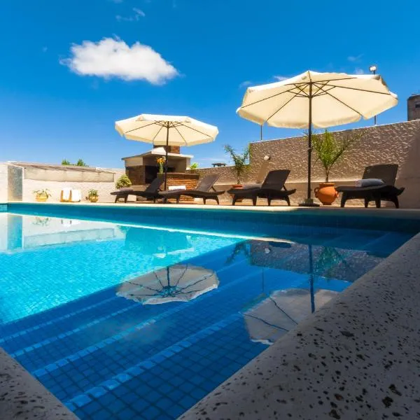 La Raíz - (Piscina Climatizada) heeft een buitenzwembad, een tuin, een terras, en biedt accommodatie in Santa Ana met gratis WiFi en uitzicht op de stad.