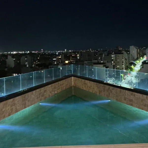 Stylish Modern apartment with automatic parking ligger i Buenos Aires og har en privat pool, udsigt til byen og en balkon.