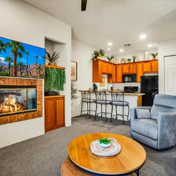 Luxury 1BR Suite Living Room, Patio, Fp & Kitchen, 12 pools -Legacy Villas beschikt over een buitenzwembad, een tuin, een terras, en biedt accommodatie in La Quinta met gratis WiFi en uitzicht op de...