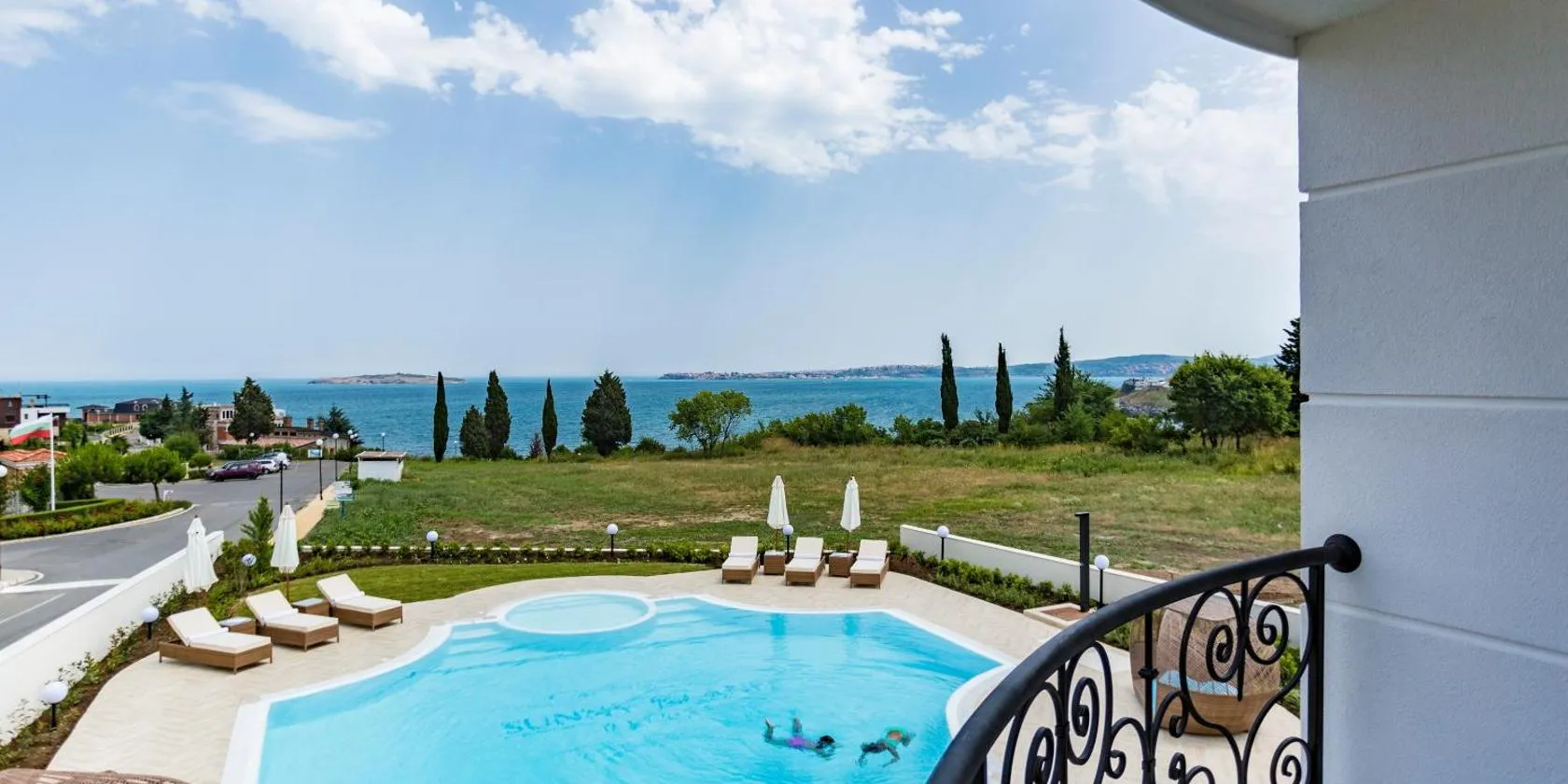 Sozopolis Cliffs Luxury Seaview Villa bevindt zich in de wijk Budjaka in Sozopol, op slechts 1,9 km van Bamboo-strand, en beschikt over een seizoensgebonden buitenzwembad, een tuin, een terras en een...