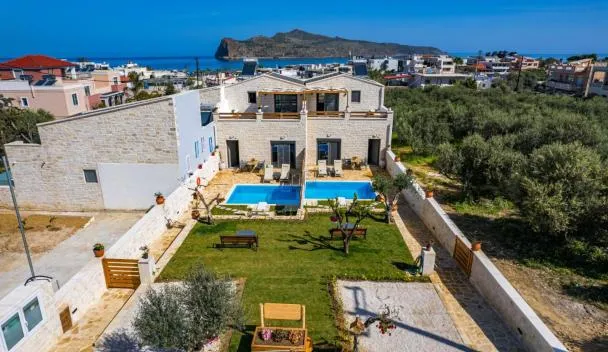 Iskios Villas beschikt over een seizoensgebonden buitenzwembad, een tuin, een terras, en biedt accommodatie in Agia Marina Nea Kydonias met gratis WiFi en uitzicht op de zee.